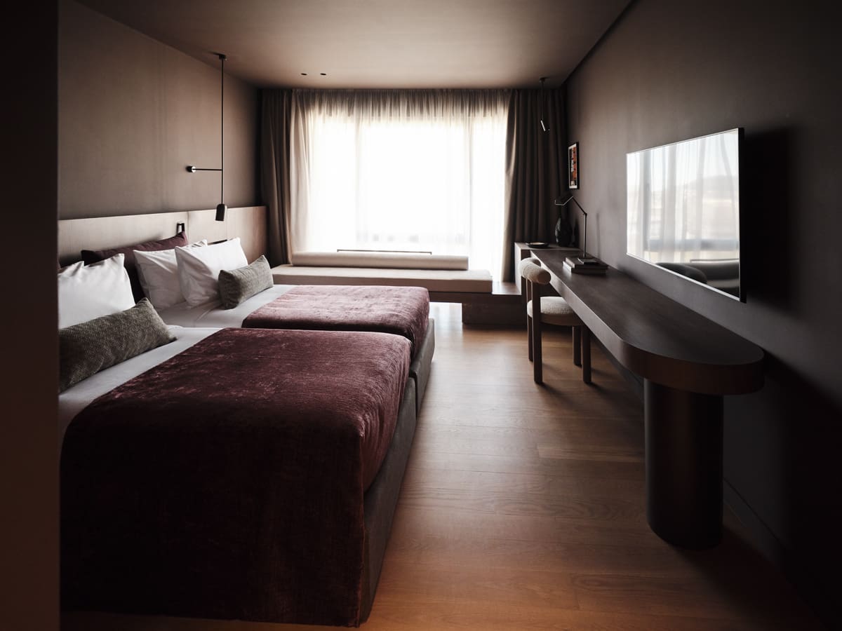 Welcome to the Deluxe Twin. The two of you will surely enjoy this generous space, which is elevated with warm, urban sophisticated style and a pop of unique art. It will be your urban sanctuary, featuring twin beds of indulgent comfort for a good night’s rest, a smart TV, a working desk and a sofa bench. Have a nice stay!
