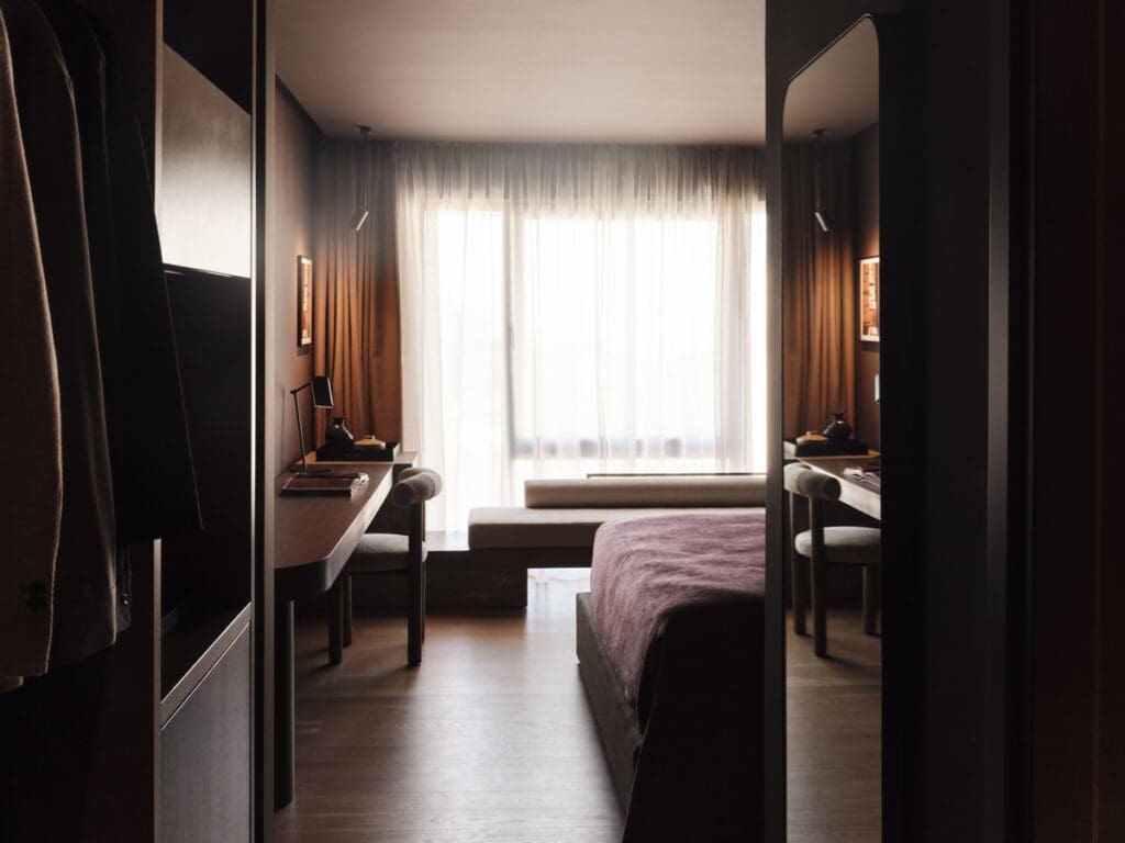 Welcome to the Executive Suite. It will be your two-space city oasis, with a bedroom and a living room, as well as a balcony with outdoor sitting. Designed to be your Athenian sanctuary, it embraces you with warm tones and timeless elegance, balanced with a curated artistic touch. It features a king-size bed of indulgent comfort for restful nights, a working desk, a corner sofa and a coffee table. Have a nice stay!
